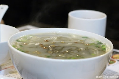 Here was the only non spicy thing they had. Salt & peppered pork intestine soup with noodles. This was yummy. Too bad after awhile everything started to taste spicy. I ended up dunking everything else in this soup trying to wash off the chili. It didn't help much though.
