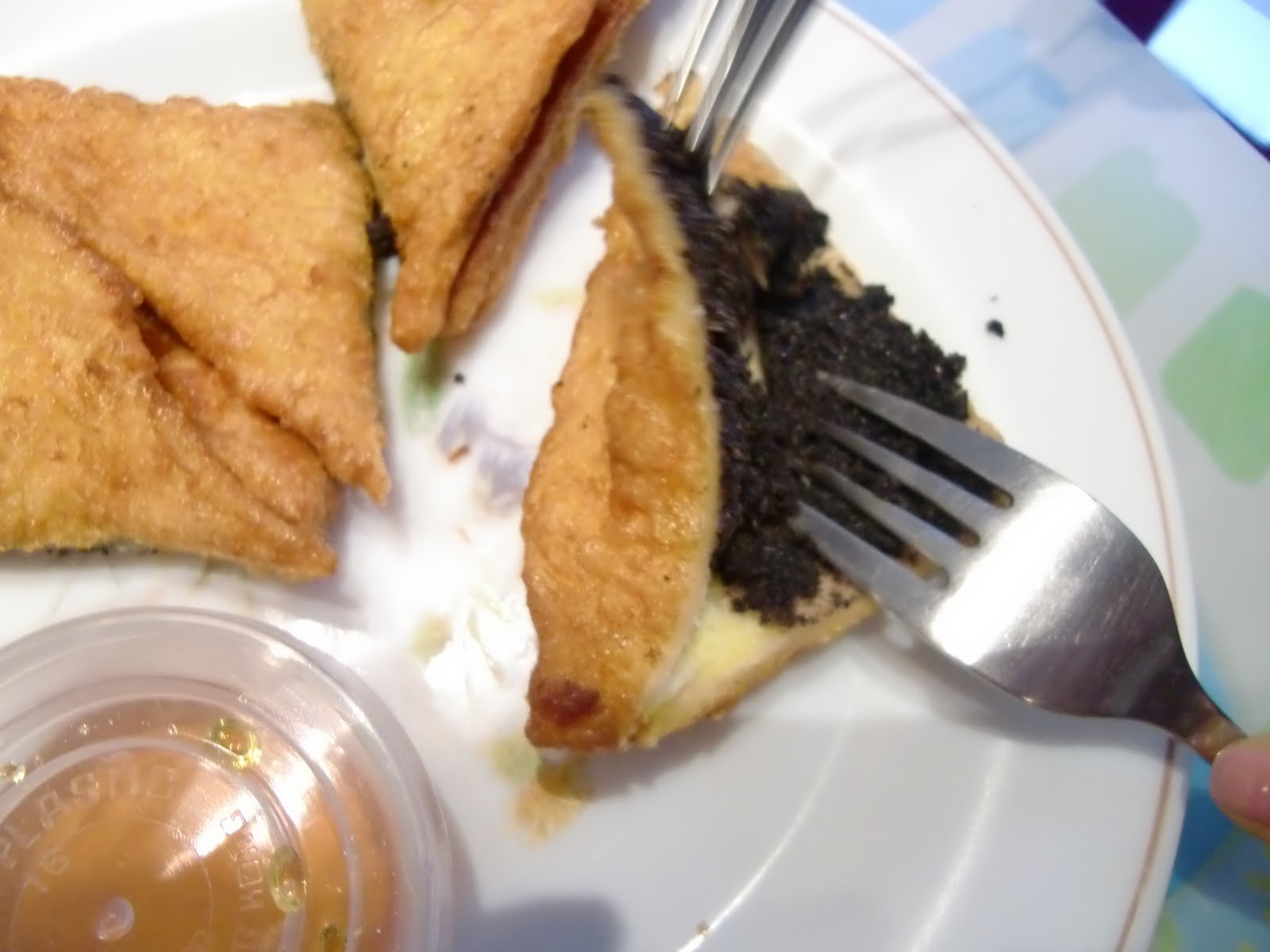 So while I was at Anytime in Causeway Bay, I noticed an item I never paid attention to before on the menu. Deep fried french toast with black sesame paste! Sounded good... and different.