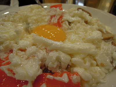 Egg whites, crab, and egg yolk make for deliciousness all around! Don't worry when you mix it all in, it cooks the yolk.