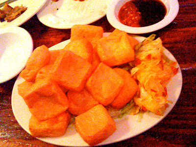 Ah! Stinky tofu... the specialty of Indian. It even comes with a side of funky Taiwanese kimchi-which tastes nothing close to the awesomeness of Korean kimchi. I've written about Stinky Tofu before while I was in Hong Kong so click here to read my full description of it. Indian's stinky tofu wasn't bad, but it definitely didn't have the odor power that the kind in HK had. We were here with a non-asian friend of ours and just its smell caused him to gag a bit. Definitely not something for the unadventurous to try.
