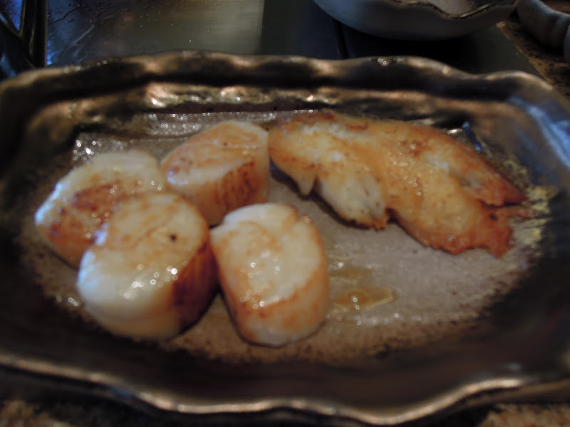 Scallops and fish. Yummy....