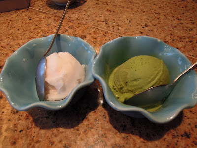 And of course ice cream freshly flown in from Japan. Here's the peach sorbet and the green tea.