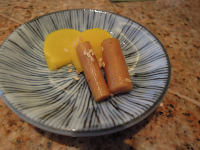Now there's a first for everything. My mom had the abalone, but the chef asked if anyone at the table wanted the other "icky" parts remaining from the abalone. (His words, not mine.) Why, not? Word to the wise I wouldn't do it in the future. This thing had to be cooked for about 30 minutes before it was deemed edible.