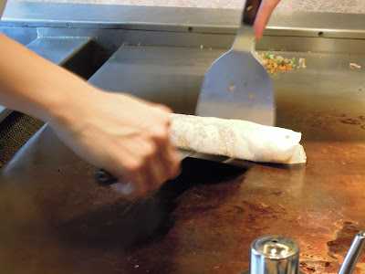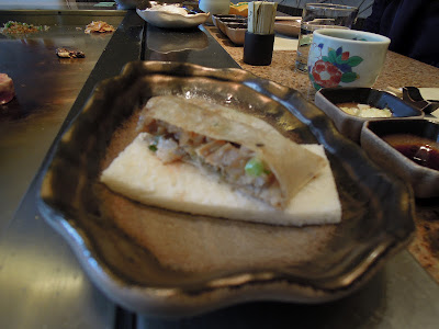 Next up was a sort of beef tortilla. The chef took a very thin sliced beef and put garlic and green onions inside and made a sandwich.