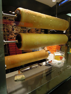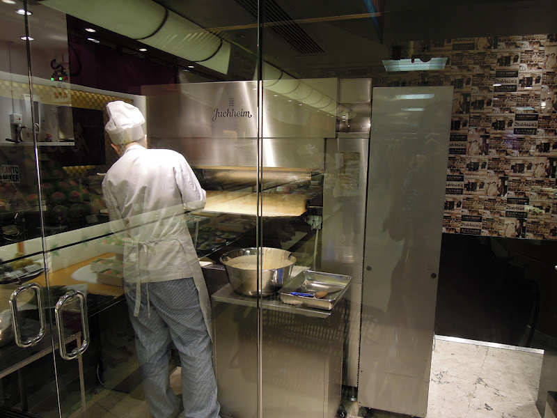 Here's the baker at the location in Sogo in Causeway Bay where there is a shop. The cakes are baked at each location daily! Keep in mind this is a very small kiosk shop.