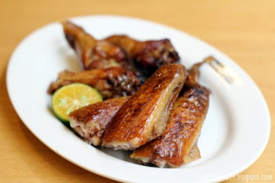 Fried Chicken Wings. They were just sitting in a machine going round and round. I knew I had to get some! Instead of lemon, they gave us calamasi instead.