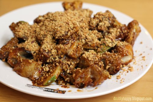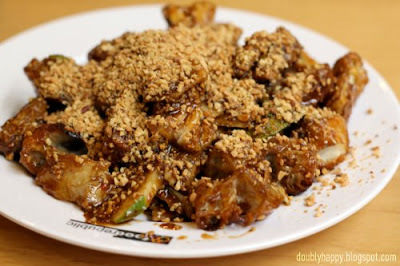 Radish cakes. Yum. This wasn't the kind you find at dim sum places though. In Singapore you pick your sauce white or black. Personally we like the spiciest of the black!