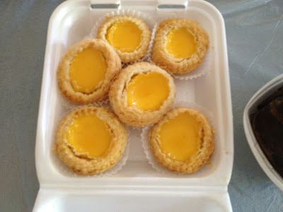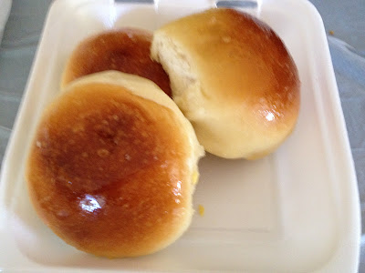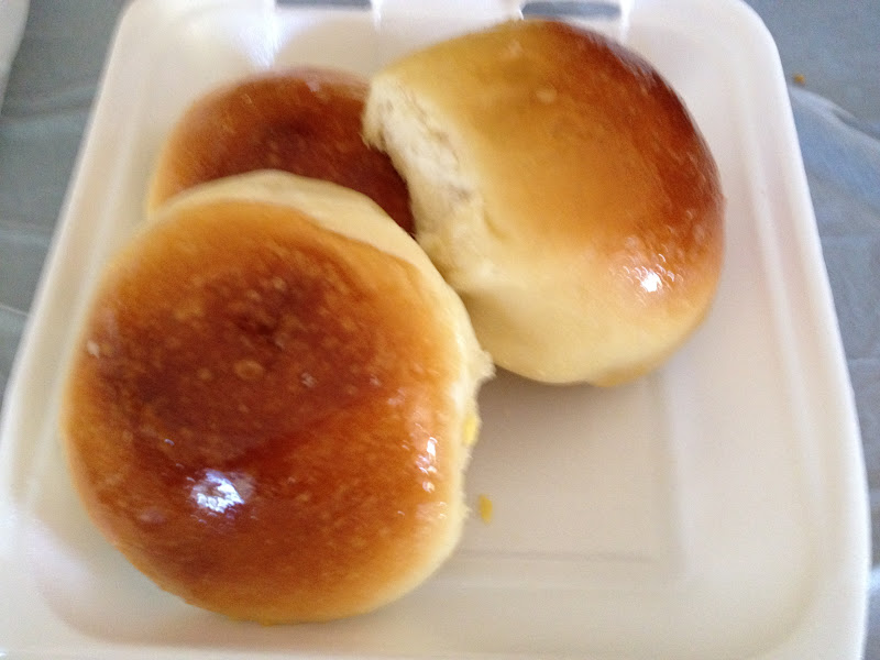 Pineapple buns with cha siu BBQ pork and pineapple buns with custard filling.