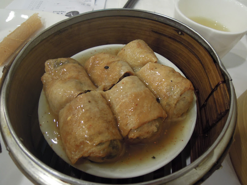 Tofu skin roll. Inside was an array of mushrooms and carrots that were steamed.