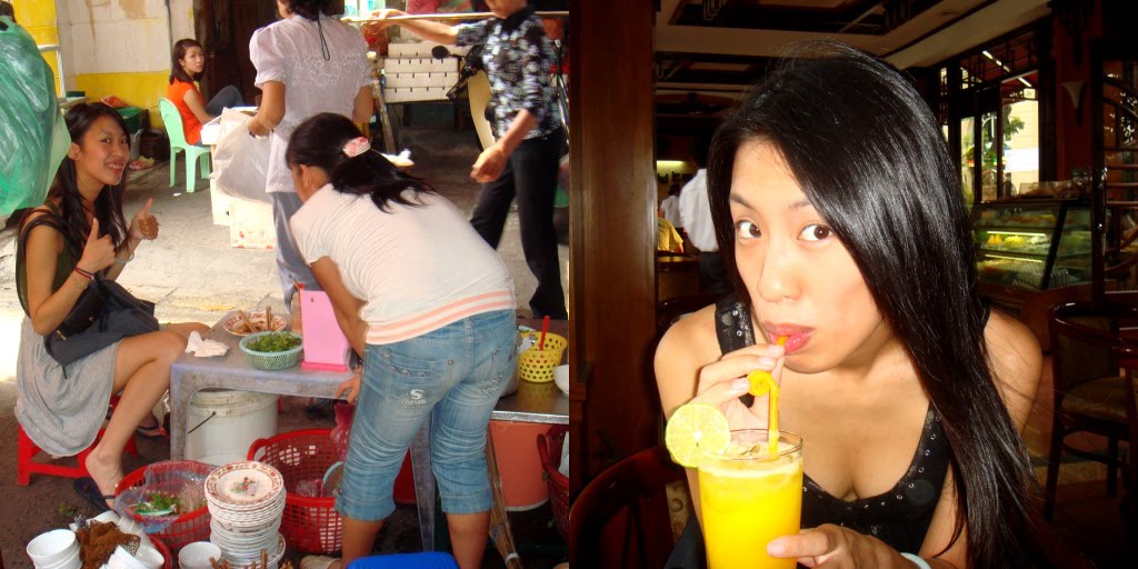 But there were more important things aside from the breathtaking views... eating on the street and having dirty, yummy, amazing food. The picture on the left is the whole restaurant. Yes the table was the restaurant and right is fresh squeezed passionfruit juice. Yum.