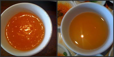 Here are the 2 sauces available. Left is the special sweet sauce used for the pork. Right is the typical fish sauce. My family doesn't like using the special sauce for their pork. I don't know why. I, on the other hand love that sauce. I'm just way more hardcore at eating Vietnamese food than them.