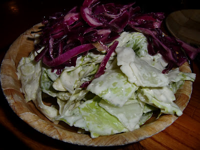 The most amazing salad ever. The cabbage has this vinegary taste to it, while the salad just taste like cheesey/ ranchy amazingness. Together you are in heaven.