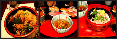 This is Hana Sakazuki, a Japanese restaurant that specializes in teppanyaki, a type of Japanese cuisine that uses an iron griddle to cook stuff. You can have your own personal chef cook in front of you and your guests while doing some fancy tricks. It's the equivalent of Benihanna's in the U.S. which by the way is a total rip off and has crappy food. They have set teppanyaki meals with such as delicacies such as wagyu beef, crab, abalone, etc. and their sorbet and meats are flown in fresh from Japan daily. Hanna Sakazuki is also one of my biggest regrets. If you recall in my first post, I told you that my Mac Book died and deleted all my pictures. My best pictures were of the teppanyaki at this place. I had pictures of the lobster still moving as it was being cooked and an awesome chef making a snowman out of fried rice that was delicious. Unfortunately, I did not order the teppanyaki this time around since my mom and sis were not hungry enough for that. We ordered their bento box lunch specials instead, which means I will have to come back soon to retake their teppanyaki pictures in the future... not that I mind.