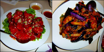 Left is what sweet and sour pork is actually supposed to look like. Take note Panda Express! And right is our yummy order of eggplant. Delicious!