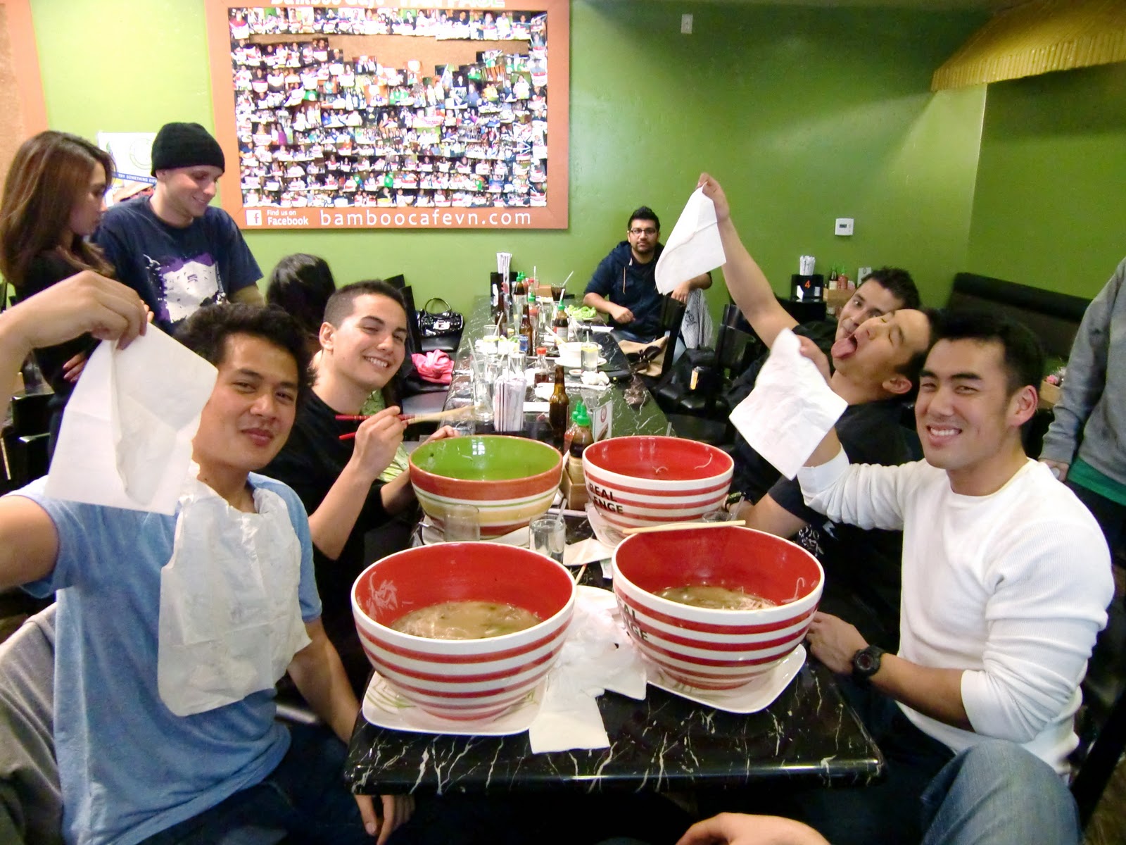 Basically it's a fail, fail situation. But of course someone has to do it right? We chose 4 lovely guys to try the contest. They were eating the whole hour they were allowed and never stopped. It looked completely gross. In fact, they vowed never to touch pho again for a very, very long time after what they went through.